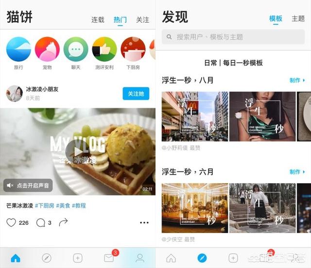 除了滤镜、视频长度、字幕等基本功能外,用户还可以通过“连剪、快剪、跳剪”等炫酷的剪辑方式来制作趣味视频,并分享到猫饼ö的内容社区。